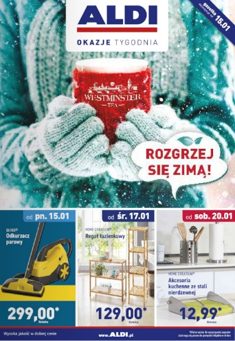 {loadposition linkAldi} Nowa gazetka promocyjna Aldi - "Rozgrzej się zimą!". Polecane promocje z gazetki Aldi: Odkurzacz parowy Quigg - 299 zł. Regał łazienkowy Home Creation - 129 zł. Akcesoria kuchenne ze stali nierdzewnej Home Creation 1…