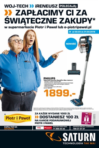 {loadposition linkMediaMarkt} 'Zapłacimy Ci za świąteczne zakupy* w supermarkecie Piotr i Paweł lub e-piotriawel.pl' - nowa gazetka promocyjna Saturn. Polecane promocje z gazetki Saturn: Odkurzacz pionowy PHILIPS SpeedPro Max FC6813/01 - 1899 zł. Ekspres ciśnieniowy SAECO Xelsis SM7683/00 -…