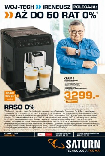 {loadposition linkMediaMarkt} 'Aż do 50 rat 0%' - nowa gazetka promocyjna Saturn. Polecane promocje z gazetki Saturn: Ekspres ciśnieniowy KRUPS EA8908 Evidence Black - 3299 zł. Odkurzacz TEFAL TY9079 Air Force Extreme 360 - 999 zł. Głośnik JBL Boombox…