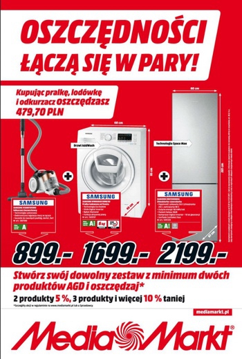 {loadposition linkMediaMarkt} Nowa gazetka promocyjna Media Markt - "Oszczędności łączą się w pary!". Polecane promocje z gazetki Media Markt: Pralka SAMSUNG WW60K42138W/EO - 1699 zł. Odkurzacz SAMSUNG VC06H70F0HD/GE - 899 zł. Lodówka SAMSUNG RB37J506MSA - 2199 zł. …