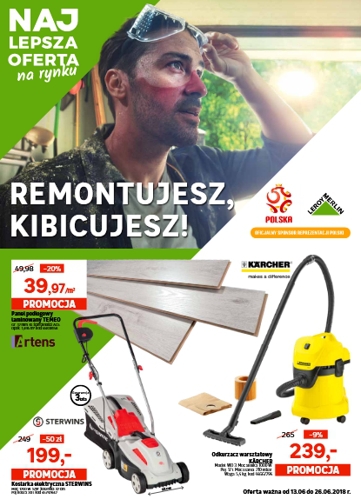 {loadposition linkLeroyMerlin} 'Remontujesz, kibicujesz!' - nowa gazetka promocyjna Leroy Merlin. Polecane promocje z gazetki Leroy Merlin: Panel podłogowy laminowany Temeo m² - 39,97 zł. Kosiarka elektryczna Sterwins 1200 W - 199 zł. Odkurzacz warsztatowy Karcher WD3 1000 W -…
