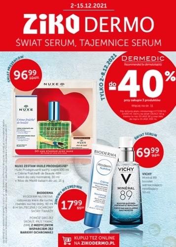 'Świat serum, tajemnice serum' - nowa gazetka promocyjna drogerii Ziko Dermo. Polecane promocje z gazetki Ziko Dermo: Zestaw Nuxe Huile Prodigieuse - 96,99 zł. Odżywczy krem dla suchej i bardzo suchej skóry Bioderma Atoderm Nutritive 40 ml - 17,99…