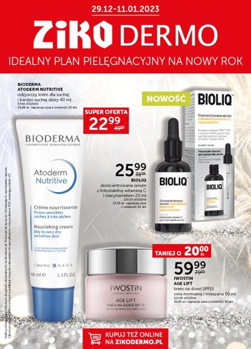 'Idealny plan pielęgnacyjny na Nowy Rok - nowa gazetka promocyjna drogerii Ziko Dermo. Polecane promocje z gazetki Ziko Dermo: Odżywczy krem dla suchej i bardzo suchej skóry Bioderma Atoderm Nutritive 40 ml - 22,99 zł. Skoncentrowane serum z fotostabilną…