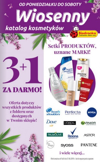 {loadposition linkBiedronka} 'Wiosenny katalog kosmetyków' - nowa gazetka promocyjna sieci sklepów Biedronka. Polecane promocje z gazetki sieci Biedronka: Szampon do włosów Gliss Kur 400 ml - 7,99 zł. Odżywka do włosów Syoss 500 ml - 7,99 zł. Żel…