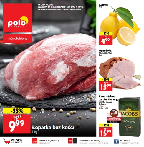 {loadposition linkPoloMarket} Nowa gazetka promocyjna Polo Market. Polecane promocje z gazetki Polo Market: Łopatka bez kości 1 kg - 9,99 zł. Cytryny 1 kg - 4,99 zł. Ogonówka Madej Wróbel - 13,99 zł. Oferta…