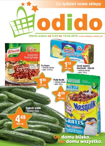 Nowa gazetka promocyjna sklepów Odido. Polecane promocje z gazetki Odido: Fix Knorr różne rodzaje - 1,95 zł. Serek topiony Hochland 100 g - 1,75 zł. Ogórek krótki 1 kg - 4,49 zł. Oferta ważna od 3.04 do…