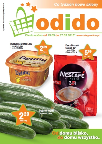 Nowa gazetka promocyjna sklepów Odido. Polecane promocje z gazetki Odido: Margaryna Delma Extra 450 g - 2,89 zł. Kawa Nescafe Classic 3w1 175 g - 5,99 zł. Ogórek krótki 1 kg - 2,29 zł. Oferta ważna od…
