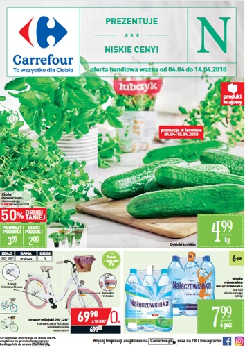 {loadposition linkCarrefour} 'Prezentuje niskie ceny!' - nowa gazetka promocyjna sieci sklepów Carrefour. Polecane promocje z gazetki Carrefour: Ogórki krótkie 1 kg - 4,99 zł. Rower miejski - 699 zł. Woda mineralna Nałęczowianka 6x1,5 L - 7,99 zł. …