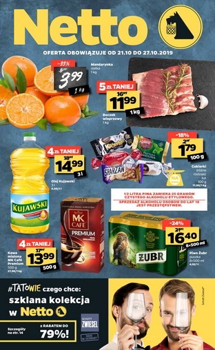Nowa gazetka promocyjna sieci sklepów Netto. Polecane promocje z gazetki Netto: Mandarynki 1 kg - 3,99 zł. Boczek wieprzowy 1 kg - 11,99 zł. Olej Kujawski 3 L - 14,99 zł. Oferta ważna od…