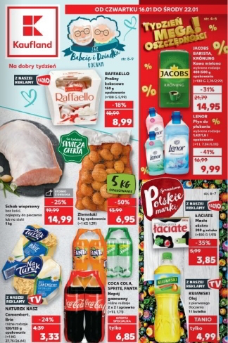 'Tydzień mega oszczędności!' - nowa gazetka promocyjna sieci marketów Kaufland. Polecane promocje z gazetki Kaufland: Kawa mielona Jacobs Kronung 500 g - 14,95 zł. Płyn do płukania Lenor 1,42 L - 9,99 zł. Olej Kujawski 1 L -…
