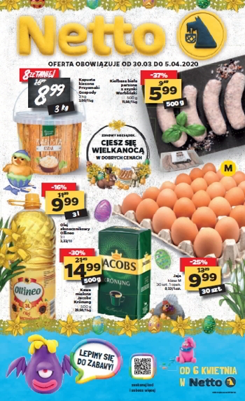Nowa gazetka promocyjna sieci sklepów Netto. Polecane promocje z gazetki Netto: Pomarańcze 1 kg - 3,59 zł. Łopatka wieprzowa 1 kg - 11,99 zł. Olej rzepakowy Wielkopolski 1 L - 3,79 zł. Oferta ważna…