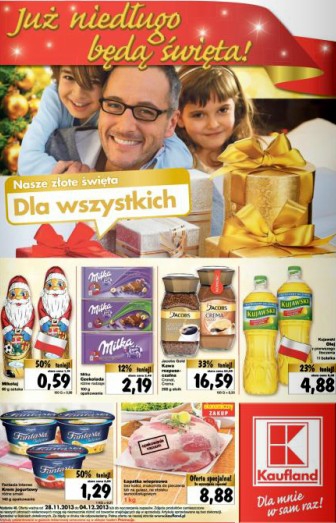 {loadposition linkKaufland} Nowa gazetka promocyjna marketu Kaufland - "Już niedługo będą święta!". Polecane promocje z gazetki Kaufland: Łopatka wieprzowa bez kości 1 kg - 8,88 zł. Olej Kujawski 1 L - 4,88 zł. Czekolada Milka 100 g -…