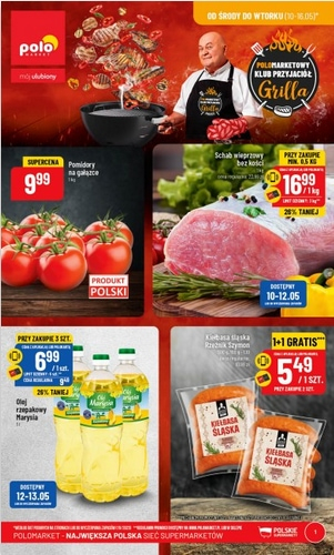 'Polomarketowy Klub Przyjaciół Grilla' - nowa gazetka promocyjna sieci sklepów Polo Market. Polecane promocje z gazetki Polo Market: Pomidory na gałązce 1 kg - 9,99 zł. Schab wieprzowy bez kości 1 kg - 16,99 zł. Olej rzepakowy Marysia 1…
