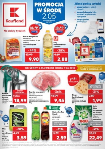 {loadposition linkKaufland} Nowa gazetka promocyjna sieci marketów Kaufland. Polecane promocje z gazetki Kaufland: Stek w marynacie barbecue 1 kg - 9,90 zł. Olej słonecznikowy 1 L - 2,88 zł. Krzesło plastikowe Cyrkon - 18,99 zł. Oferta ważna…