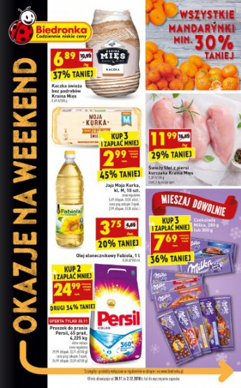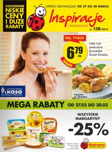 {loadposition linkBiedronka} 'Okazje na weekend' - nowa gazetka promocyjna sieci sklepów Biedronka. Polecane promocje z gazetki sieci Biedronka: Kaczka świeża bez podrobów Kraina Mięs 1 kg - 6,89 zł. Świeży filet z piersi kurczaka Kraina Mięs 1 kg -…