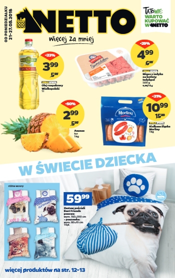 {loadposition linkNetto} 'W świecie dziecka' - nowa gazetka promocyjna sieci sklepów Netto. Polecane promocje z gazetki Netto: Zestaw pościeli Best Friends - 59,99 zł. Olej rzepakowy Wielkopolski 1 L - 3,99 zł. Mięso z indyka na kotlety Indykpol…