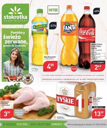 'Pomidory świeżo zerwane, prosto do Stokrotki' - nowa gazetka promocyjna sieci sklepów Stokrotka. Polecane promocje z gazetki Stokrotka: Olej Kujawski 1 L - 4,88 zł. Obiadowa ćwiartka z kurczaka 1 kg - 3,99 zł. Piwo Tyskie…