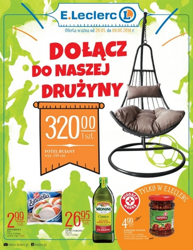 {loadposition linkEleclerc} 'Dołącz do naszej drużyny' - nowa gazetka promocyjna sieci handlowej E.Leclerc. Polecane promocje z gazetki E.Leclerc: Fotel bujany - 320 zł. Zottarella Zott 125 g - 2,99 zł. Flaki Pudliszki 500 g - 6,99 zł. …