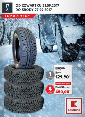 {loadposition linkKaufland} Nowa gazetka promocyjna marketu Kaufland. Polecane promocje z gazetki Kaufland: Opona zimowa bieżnikowana 4 sztuki - 450 zł. Brytfanka 5,6 L - 59,99 zł. Komplet sztućców Colibri - 22,99 zł. Oferta ważna od 21.09 do…