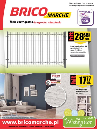 {loadposition linkBricomarche} 'Cenowe WOW!' - nowa gazetka promocyjna sieci sklepów Bricomarche. Polecane promocje z gazetki Bricomarche: Panel ogrodzeniowy 3D ocynkowany - 39,99 zł. Beton B25 Baumit 25 kg - 8,88 zł. Nawóz granulowany 5 kg - 14,99…
