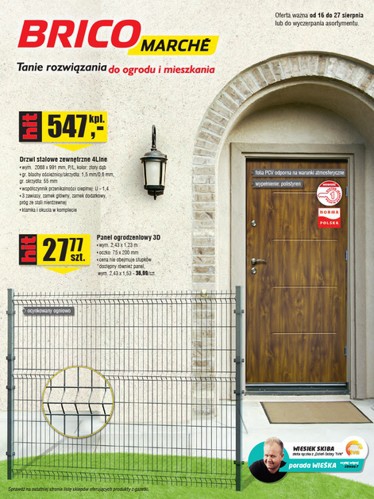{loadposition linkBricomarche} Nowa gazetka promocyjna sieci sklepów Bricomarche. Polecane promocje z gazetki Bricomarche: Drzwi zewnętrzne stalowe 4Line - 547 zł. Panel ogrodzeniowy 3D - 27,77 zł. Lampka biurkowa - 39,99 zł. Oferta ważna od 16.08…
