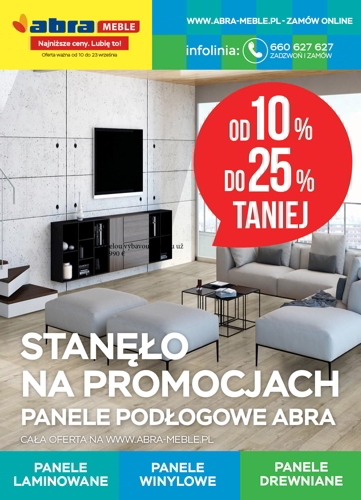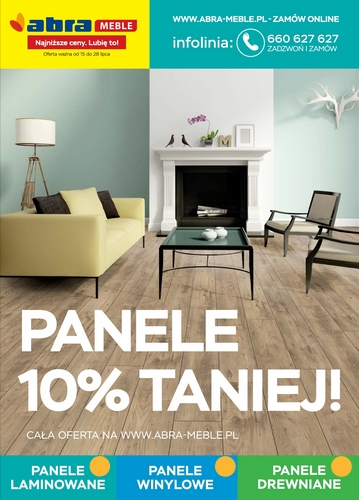 'Panele podłogowe Abra, najlepsza podłoga krok po kroku' - nowa gazetka promocyjna sieci sklepów Abra Meble. Polecane promocje z gazetki Abra Meble: Panel podłogowy Dąb Cloe Swiss Krono m² - 27,95 zł. Panel podłogowy Wiąz Amaranta Swiss Krono m² -…