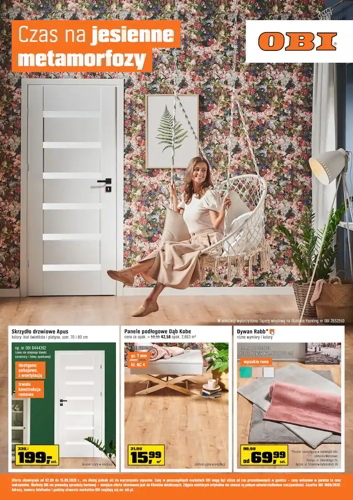{loadposition linkObi} 'Czas na jesienne metamorfozy' - nowa gazetka promocyjna sieci marketów Obi. Polecane promocje z gazetki Obi: Skrzydło drzwiowe Apus - 199 zł. Panele podłogowe Dąb Kobe m² - 15,99 zł. Dywan Rabb rózne wymiary i kolory -…