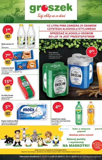 {loadposition linkGroszek} Nowa gazetka promocyjna sieci sklepów Groszek. Polecane promocje z gazetki Groszek: Piwo Okocim 4x500 ml - 9,89 zł. Mleko Łaciate 1 L - 1,98 zł. Papier toaletowy Mola 8 rolek - 5,79 zł. …