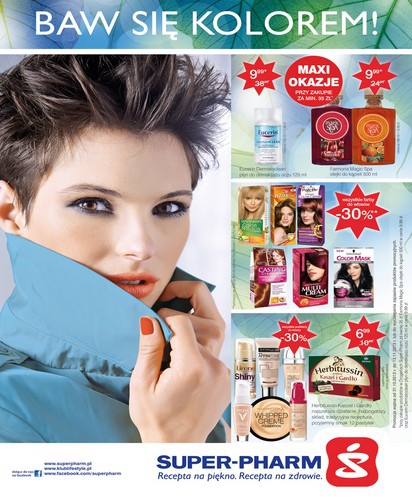 Nowa gazetka promocyjna Super-Pharm - "Baw się kolorem". Polecane promocje z gazetki Super-Pharm: Szampon do włosów Nivea 400 ml - 9,99 zł. Lakier do włosów Taft 250 ml - 9,99 zł. Papier toaletowy Velvet 12 rolek - 7,99…