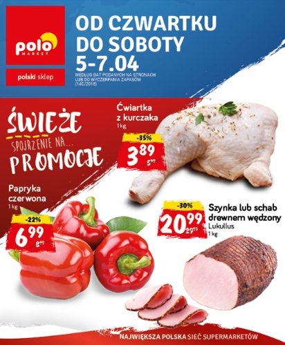 {loadposition linkPoloMarket} 'Świeże spojrzenie na... promocje' - nowa gazetka promocyjna sieci sklepów Polo Market. Polecane promocje z gazetki Polo Market: Ćwiartka z kurczaka 1 kg - 3,89 zł. Szynka lub schab drewnem wędzony Lukullus 1 kg - 20,99…