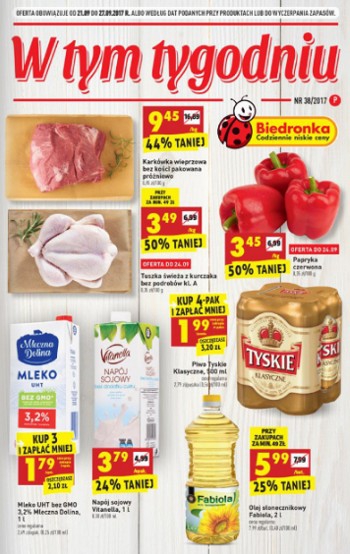 {loadposition linkBiedronka} Nowa gazetka promocyjna sieci sklepów Biedronka - "W tym tygodniu". Polecane promocje z gazetki sieci Biedronka: Karkówka wieprzowa bez kości pakowana próżniowo 1 kg - 9,45 zł. Papryka czerwona 1 kg - 3,45 zł. …