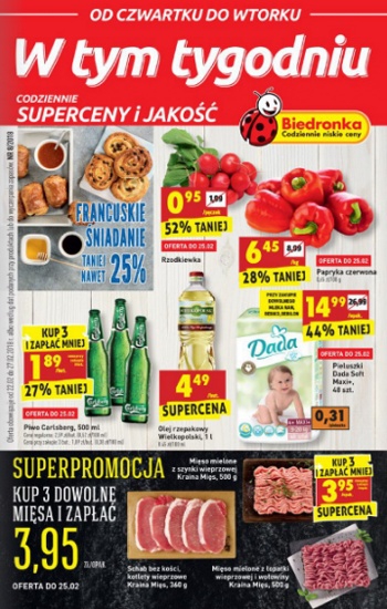 {loadposition linkBiedronka1} 'W tym tygodniu codziennie superceny i jakość' - nowa gazetka promocyjna sieci sklepów Biedronka. Polecane promocje z gazetki sieci Biedronka: Papryka czerwona 1 kg - 6,45 zł. Ptasie Mleczko Wedel 2x380 g - 17,98 zł. Olej…
