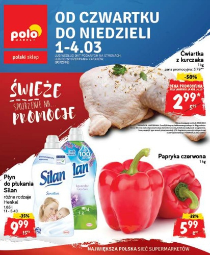 {loadposition linkPoloMarket} 'Świeże spojrzenie na... promocje' - nowa gazetka promocyjna sieci sklepów Polo Market. Polecane promocje z gazetki Polo Market: Ćwiartka z kurczaka 1 kg - 2,99 zł*. Płyn do płukania Silan 1,85 L - 9,99 zł. …