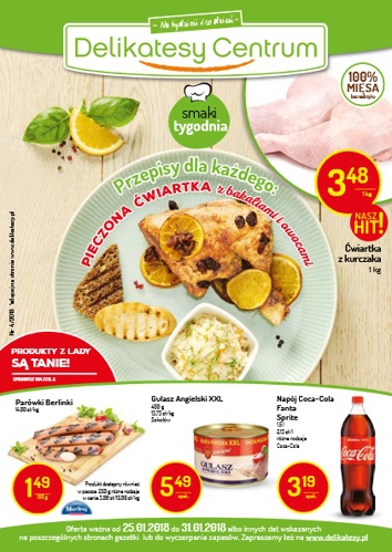 {loadposition linkDelikatesyCentrum} Nowa gazetka promocyjna Delikatesów Centrum. Polecane promocje z gazetki Delikatesów Centrum: Ćwiartka z kurczaka 1 kg - 3,48 zł. Parówki Berlinki Morliny 100 g - 1,49 zł. Gulasz Angielski XXL Sokołów 400 g -…