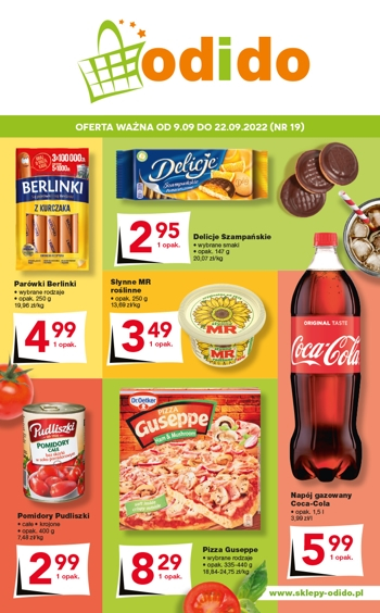 {loadposition linkOdido} Nowa gazetka promocyjna sklepów Odido. Polecane promocje z gazetki Odido: Parówki Berlinki 250 g - 4,99 zł. Delicje Szampańskie 147 g - 2,95 zł. Słynne MR roślinne 250 g - 3,49 zł. Oferta ważna od…