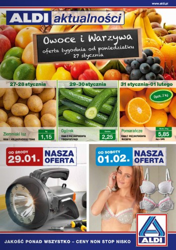 {loadposition linkAldi} Nowa gazetka promocyjna Aldi. Polecane promocje z gazetki Aldi: Pasek skórzany męski - 24,99 zł. Lampy podszafkowe z czujnikiem ruchu - 99 zł. Sportowe wkładki żelowe - 11,99 zł. Oferta ważna od 27.01 do wyczerpania zapasów.