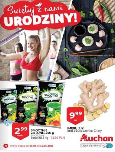 {loadposition linkAuchan} 'Świętuj z nami urodziny' - nowa gazetka promocyjna sieci marketów Auchan. Polecane promocje z gazetki Auchan: Smoothie Zielone 250 g - 2,99 zł. Imbir 1 kg - 9,99 zł. Pasta curry Thai Pride 50 g -…