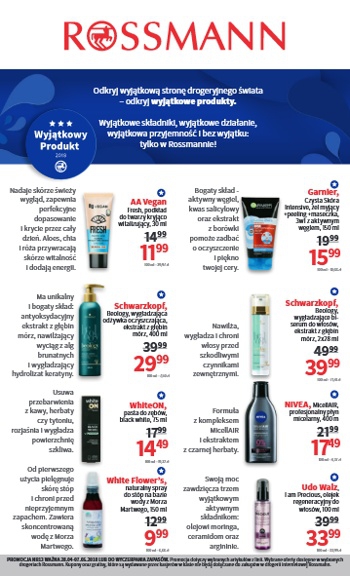 {loadposition linkRossmann} 'Wyjątkowy produkt 2018' - nowa gazetka promocyjna drogerii Rossmann. Polecane promocje z gazetki Rossmann: Podkład do twarzy kryjąco wygładzający AA Vegan Fresh 30 ml - 11,99 zł. Odżywka wygładzająco oczyszczająca z ekstraktem z głębin mórz Schwarzkopf…