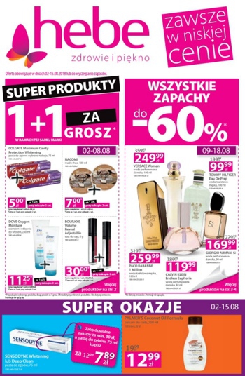 {loadposition linkHebe} 'Super produkty 1+1 za grosz' - nowa gazetka promocyjna drogerii Hebe. Polecane promocje z gazetki Hebe: Pasta do zębów Colgate Maximum Cavity Protection Whitening 2x75 ml - 10 zł. Masło shea Nacomi 2x100 ml - 14…