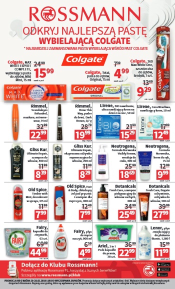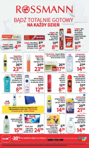 {loadposition linkRossmann} 'Bądź totalnie gotowy na kazdy dzień' - nowa gazetka promocyjna drogerii Rossmann. Polecane promocje z gazetki Rossmann: Pasta do zębów Colgate Total Original 75 ml - 4,69 zł. Szczoteczka do zębów Colgate 360 Max White One -…