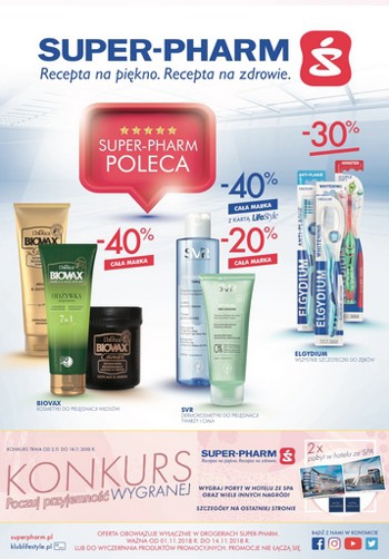 'Super-Pharm poleca' - nowa gazetka promocyjna Super-Pharm. Polecane promocje z gazetki Super-Pharm: Mydło w płynie Dove zapas 500 ml - 5,99 zł. Maska do włosów Garnier Fructis Hair Food 390 ml - 16,99 zł. Pasta do zębów Colgate 75…