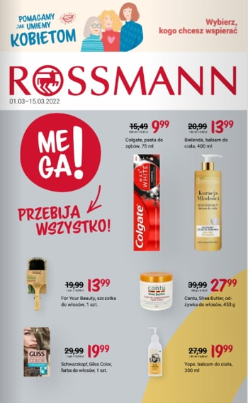 {loadposition linkRossmann} 'Mega! Przebija wszystko' - nowa gazetka promocyjna drogerii Rossmann. Polecane promocje z gazetki Rossmann: Pasta do zębów Colgate 75 ml - 9,99 zł. Balsam do ciała Bielenda 400 ml - 13,99 zł. Szczotka do włosów For Your…