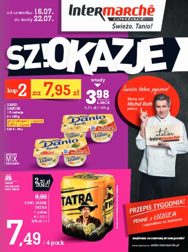 {loadposition linkIntermarche} Nowa gazetka promocyjna sieci handlowej Intermarche - "Sz!Okazje". Polecane promocje z gazetki Intermarche: Danio Danone 8x140 g - 7,95 zł. Piwo Tatra 4x500 ml - 7,49 zł. Pasta do zębów Colodent 100 ml - 2,99 zł. …