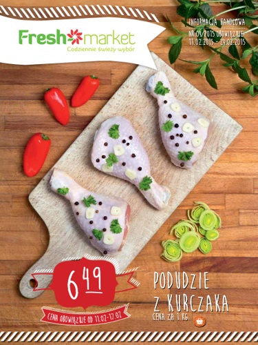 {loadposition linkFreshmarket} Nowa gazetka promocyjna Freshmarket. Polecane promocje z gazetki Freshmarket: Podudzie z kurczaka 1 kg - 6,49 zł. Pasztet Gospodarza Indykpol 1 kg - 9,99 zł. Łosoś sałatkowy Koral 200 g - 5,99 zł. Oferta ważna od…