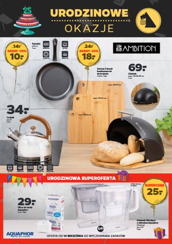 'Urodzinowe okazje' - nowa gazetka promocyjna sieci sklepów Netto. Polecane promocje z gazetki Netto: Patelnia śr. 24 cm - 10 zł. Zestaw 3 desek bambusowych do krojenia - 18 zł. Chlebak Ambition - 69 zł. Oferta ważna…