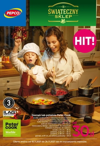 {loadposition linkPepco} 'Świąteczny sklep' - nowa gazetka promocyjna sieci sklepów Pepco. Polecane promocje z gazetki Pepco: Garnek ze szklaną pokrywą Peter Cook Marble - 60 zł. Rondel Peter Cook linia Marble - 30 zł. Patelnia Peter Cook linia Marble…