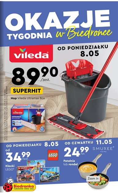 {loadposition linkBiedronka5} 'Okazje tygodnia' - nowa gazetka promocyjna sieci sklepów Biedronka. Polecane promocje z gazetki sieci Biedronka: Mop Vileda Ultramax Box - 89,90 zł. Klocki LEGO - od 34,99 zł. Patelnia lub rondel Smukee Home - 29,99 zł. …