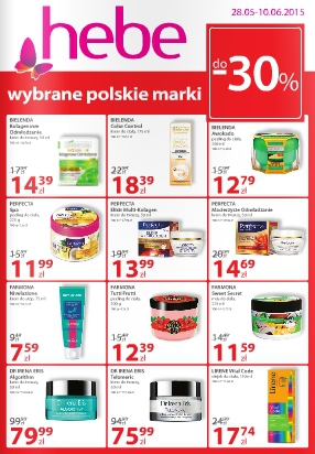 {loadposition linkHebe} Nowa gazetka promocyjna drogerii Hebe - "Wybrane polskie do marki do -30%". Polecane promocje z gazetki Hebe: Krem do twarzy Bielenda Kolagenowe Odmłodzenie 50 ml - 14,39 zł. Krem do ciała Bielenda Color Control 175 ml -…