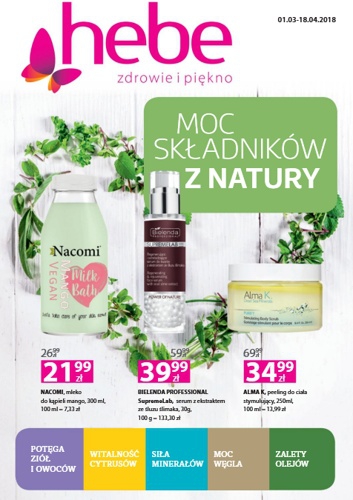 {loadposition linkHebe} 'Moc składników z natury' - nowa gazetka promocyjna drogerii Hebe. Polecane promocje z gazetki Hebe: Mleko do kąpieli Nacomi mango 300 ml - 21,99 zł. Serum z ekstraktem ze śluzu ślimaka Bielenda Professional SupremeLab 30 g…