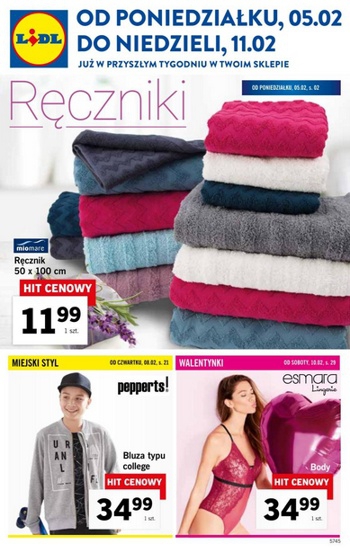 {loadposition linkLidl} Nowa gazetka promocyjna sieci sklepów Lidl. Polecane promocje z gazetki sklepów Lidl: Ręcznik Miomare 50x100 cm - 11,99 zł. Bluza typu college Pepperts - 34,99 zł. Body Esmara Lingerie - 34,99 zł. Oferta ważna…